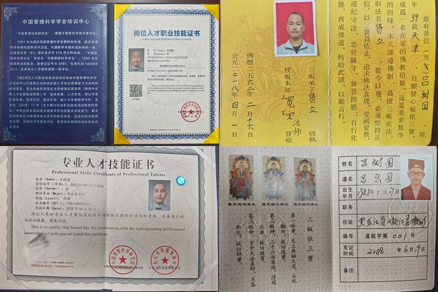 专业领域的深耕,让吕树国收获了国家权威机构的诸多认可。他不仅被中国管理科学学会认证为“高级国学文化讲师”,还获中国管理科学研究院授予“高级风水策划师”称号,更被中国伏羲易学研究学会评定为“中国易学专家”。此外,他还拥有中国心理卫生协会认证的“高级心理咨询师”资质,以及七十二福地之绿萝山丰和殿颁发的“优秀道士”荣誉。